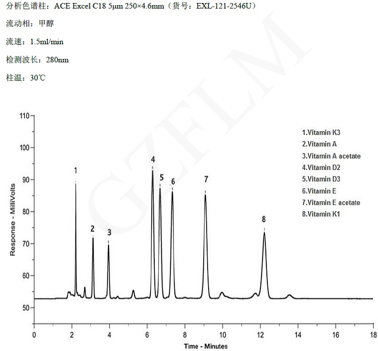 維生素包括脂溶性和水溶性維生素,由于在色譜上表現(xiàn)差異很大,很多會選擇不同的色譜柱來分析。