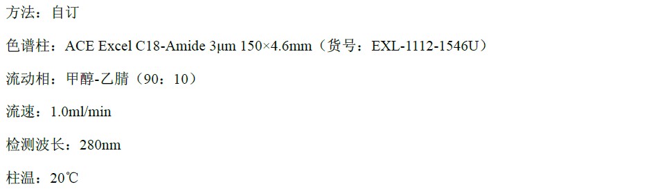 反相液相色譜,國標(biāo)為甲醇/水=95/5的體系,我們用純甲醇體系: