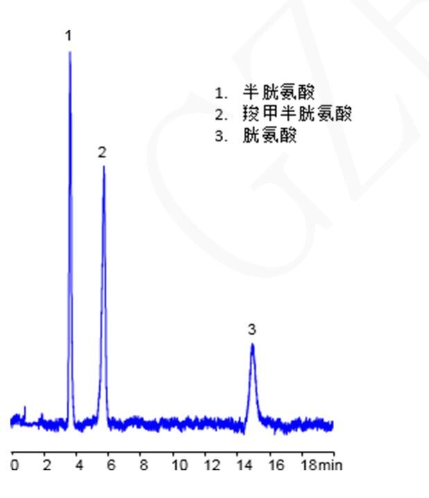 兩款色譜柱混合模式分離半胱氨酸、羧甲半胱氨酸與胱氨酸