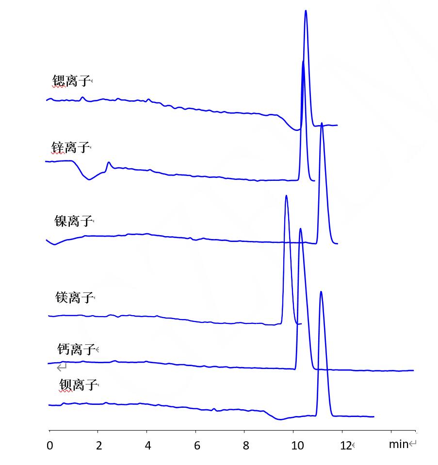 Comixsil RP-100 混合柱關(guān)于二價(jià)金屬離子的保留時(shí)間