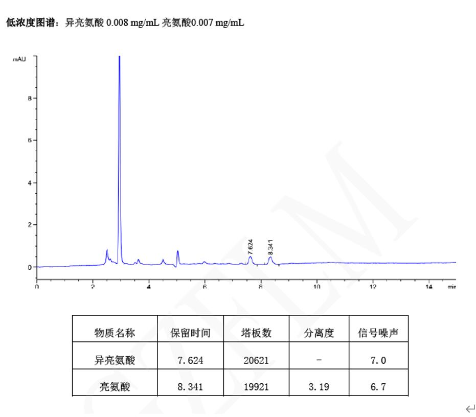 看,它可以將異亮氨酸和亮氨酸分開,而且分離度很不錯(cuò)哦!