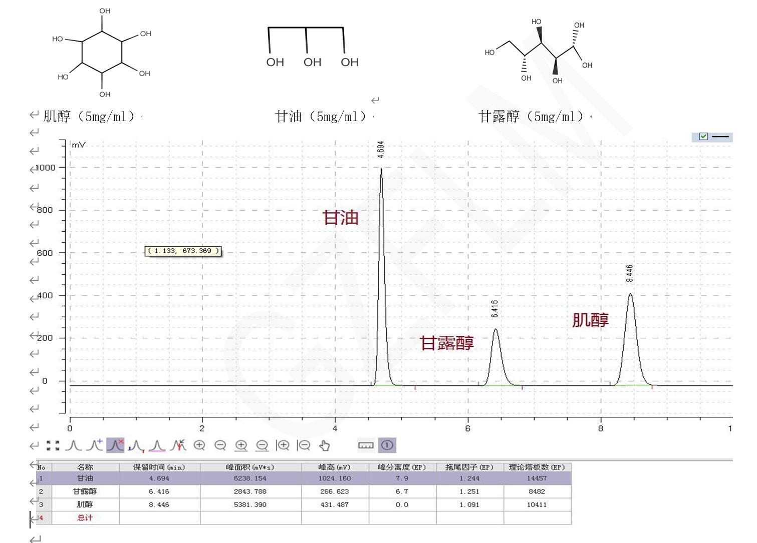 案例說(shuō)明:Comixsil HCS 利用陽(yáng)離子交換+HILIC 的混合模式,可以利用醇類化合物之間親水性不同達(dá)到分離效果,可以通過(guò)調(diào)節(jié)有機(jī)相的比例和緩沖鹽的濃度調(diào)節(jié)保留時(shí)間。