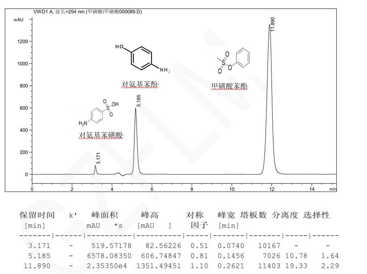 Comixsil ACRP 混合模式分離對氨基苯磺酸、對氨基苯酚與甲磺酸苯酯