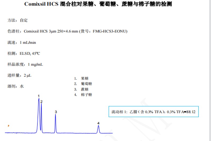 只能通過親水性和氫鍵作用把他們分開,由于果糖和葡萄糖都是5個羥基,只是位置不同,所以在圖譜里可以看到,兩個峰是距離很近的。