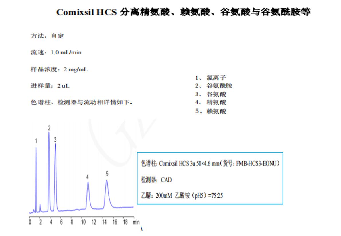 由上面幾個圖可以看到,四個氨基酸他們都有一個氨基的pka在9左右,也就是說ph低于7都有電離,而且他們也都有一個羥基的pka在2左右,所以ph大于4左右也會有電離,所以當使用的緩沖鹽的ph等于5時,可以使用陽離子交換和陰離子排斥的作用,同時也可以使用氫鍵的作用作為保留。再根據(jù)他們的親水性不同,將他們分開。
