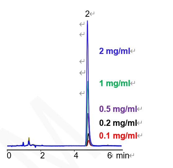 說明:此方法同時適合多肽中TFA殘留量的測定。多肽的出峰時間將于蛋白相似或更早, 都不會干擾TFA的定量。此外,UV下的分析,也可采用Comixsil HAX 3u 100*4.6mm