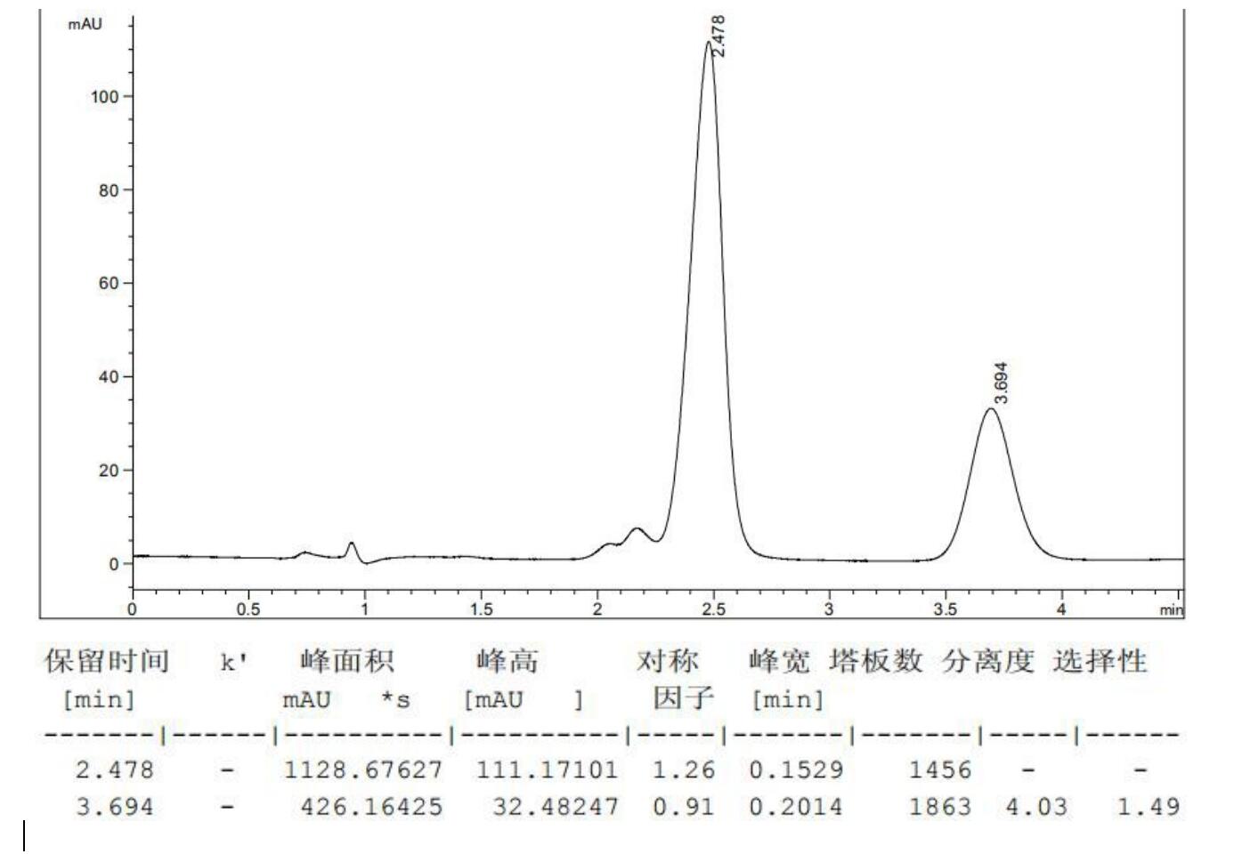 (貨號(hào):FMF-AAOAL-EONU)這款手性柱進(jìn)行分離,出峰順序會(huì)與以上圖譜相反,但保留與分離度會(huì)更好。
