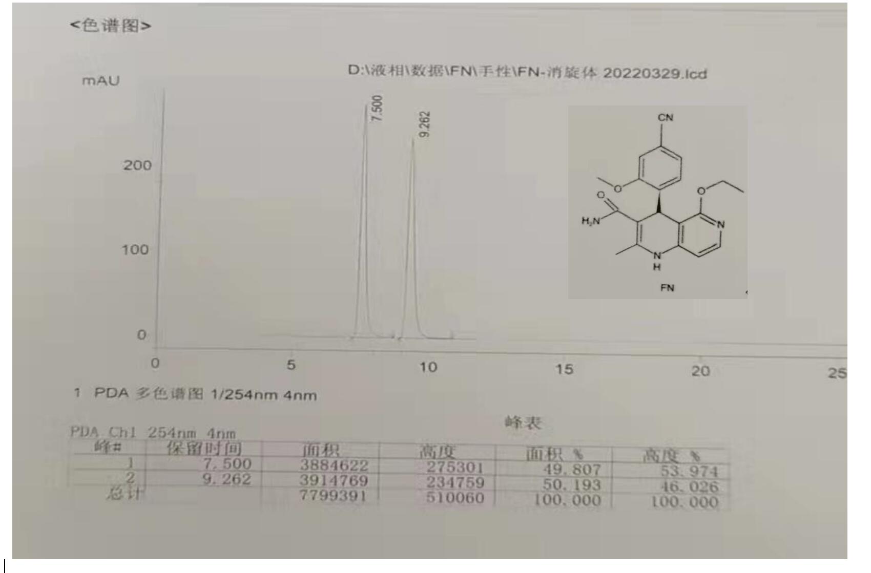 色譜柱:Chiral INA 5u 250*4.6mm (貨號:FMG-JY5-I01)
