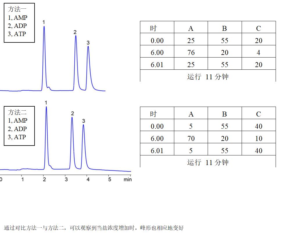 1. **色譜圖**: - 通過色譜圖可以直觀地看到AMP、ADP和ATP的分離情況。每個化合物在色譜圖上都有一個特定的保留時間,這是其身份識別的關鍵依據(jù)。
