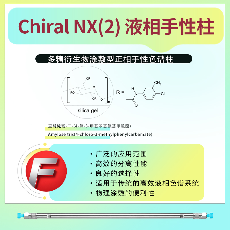 菲羅門Chiral NX(2)液相手性色譜柱采用直鏈淀粉-三-(4-氯-3-甲基苯基氨基甲酸酯)(Amylose tris(4-chloro-3-methylphenylcarbamate))作為固定相,這是一種多糖衍生物,能夠提供優(yōu)異的手性識別能力。該色譜柱適用于正相液相色譜(NP-HPLC)以及超臨界流體色譜(SFC)分離模式,為手性化合物的分離提供了廣泛的選擇。