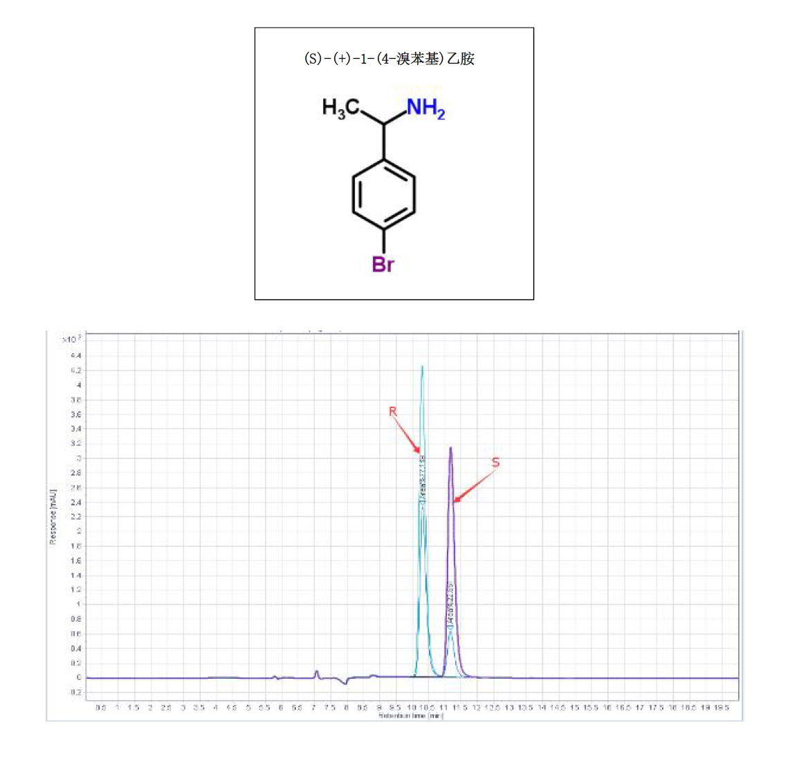App ID: FLM-B250010 R,S(+)-1-(4-溴苯基)乙胺的手性分析 色譜柱:Chiral MJ(2) 250 × 4.6 mm,5 μm 貨號(hào):FMG-AC5-B03-NFC 流速:0.5 mL/min 波長(zhǎng):230 nm 柱溫:25 ℃ 進(jìn)樣量:1 uL 樣品濃度:N/A 流動(dòng)相:咨詢銷售 色譜圖: