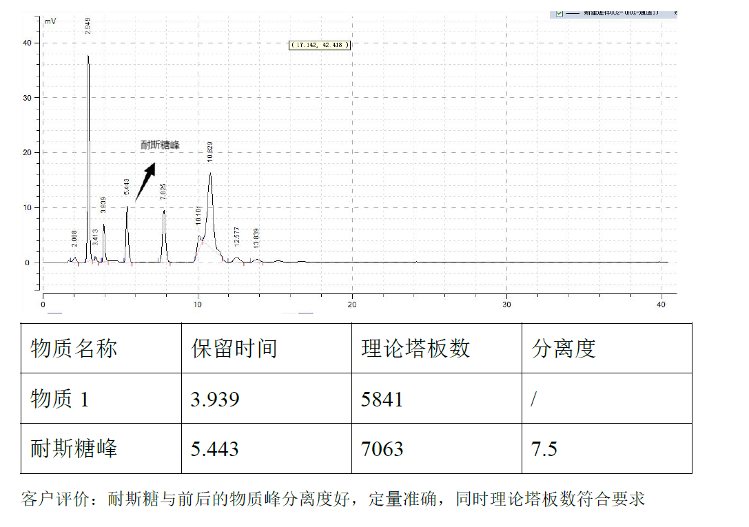 App ID: FLM-T250003 Titank C18 柱對巴戟天的含量測定 方法:《中國藥典》2020 版一部 色譜柱:Ttiank C18 5μ 250*4.6mm (貨號:FMG-5560-EONU)) 流速:1 mL/min 檢測:ELSD, 漂移管溫度80°C,流量:3.0L/min 樣品濃度:客戶根據(jù)藥典配置 進樣量:20 μ 流動相:甲醇:水=97:3 色譜圖: ![]() |