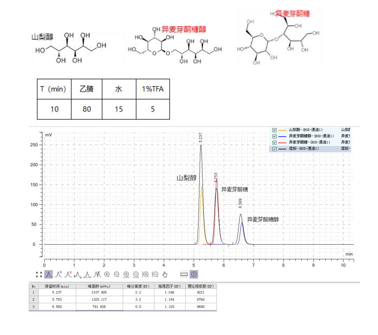 Comixsil RP-100 HPLC-UV 法直接分析有機酸-丁酸戊酸已酸庚酸辛酸 色譜柱:Comixsil RP-100 3μ 150x4.6mm 貨號:FMF-100R3-EONU 流速:1mL/min 檢測:UV 210nm 柱溫:25oC 進樣量:5uL 流動相:乙腈:水:硫酸(20%:75%:5%) 色譜圖: ![]() |