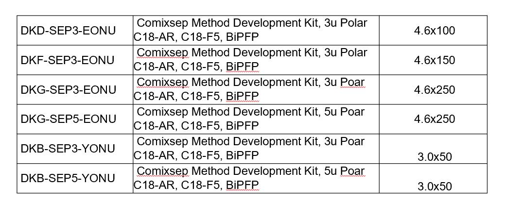 Comixsep復(fù)合反相固定相方法包貨號(hào)信息