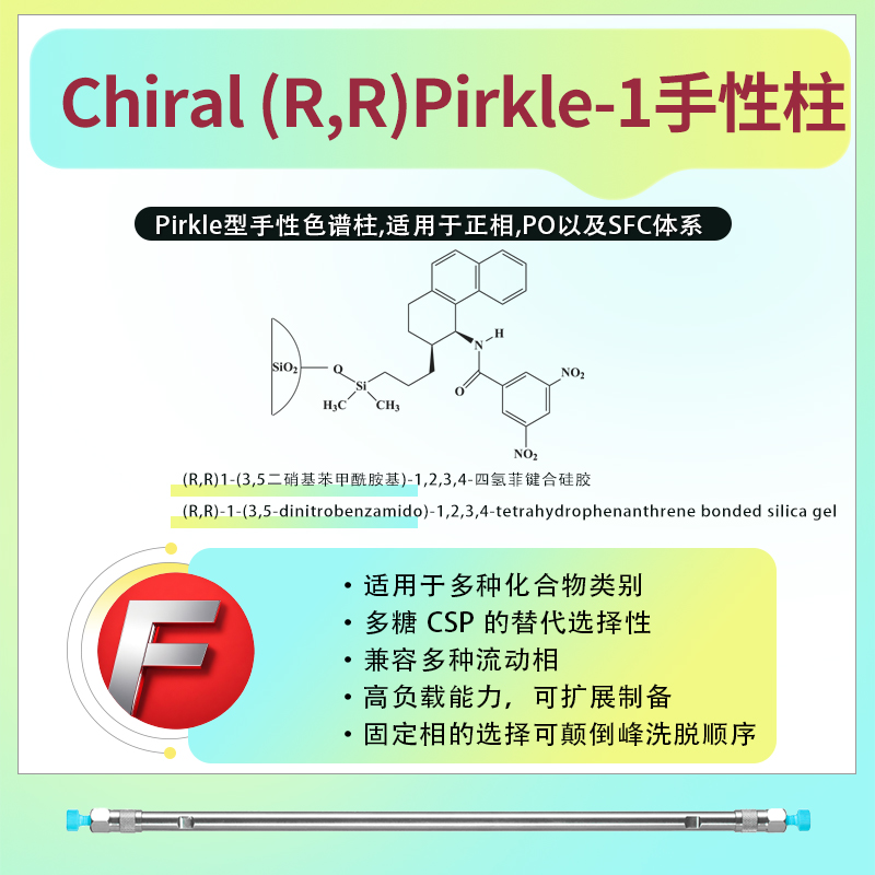 • Chiral (R,R)Pirkle-1 手性柱 Chiral (R,R)Pirkle-1 手性柱是一種具有手性識(shí)別特性的固相填充柱,主要用于對(duì)立體異構(gòu)體具有分離作用