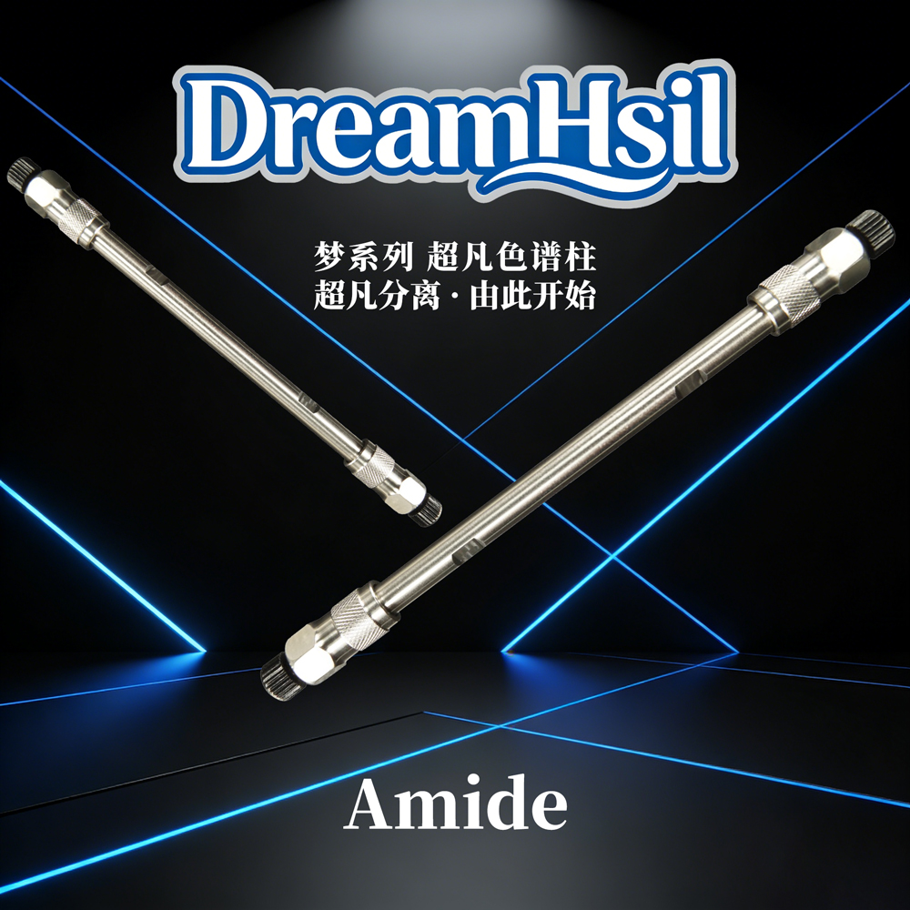 - DreamHsil Amide 色譜柱 采用獨(dú)特鍵合技術(shù),將酰胺基團(tuán)直接獨(dú)立的單位點(diǎn)鍵合于Si-H鍵上直接形成Si-C鍵的Amide鍵合相。增加了穩(wěn)定性與壽命 。不發(fā)生固定相的酸解。