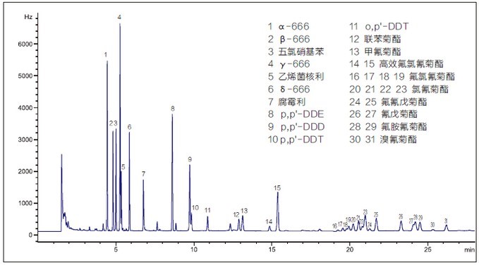 2、黃瓜中農(nóng)藥多殘留檢測色譜圖