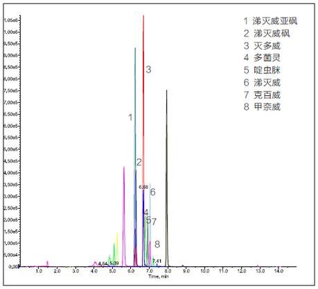 圖 2 添加水平為 0.05mg/kg 黃瓜中氨基甲酸酯類農(nóng)藥多殘留檢測色譜圖