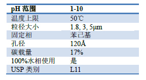 - 具有與常規(guī)色譜柱同樣標準的疏水性和親水性的良好平衡,避免市售 C18 雜化硅膠柱表現(xiàn)出的保留降低的問題