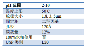 - 二羥丙基鍵合相為親水相互作用(HILIC)色譜柱,可分離那些在反相色譜柱中因保留較弱而難以分離的強極性化合物
