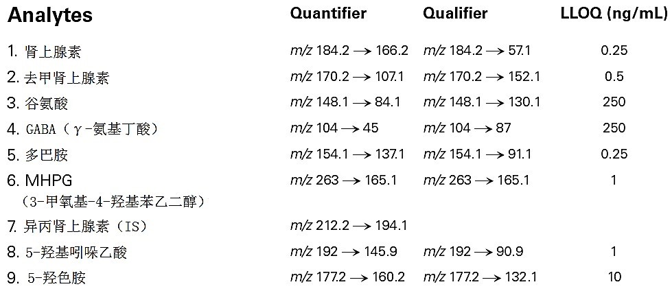 大鼠腦組織中神經(jīng)遞質(zhì)及其代謝物的 LC-MS-MS 分析