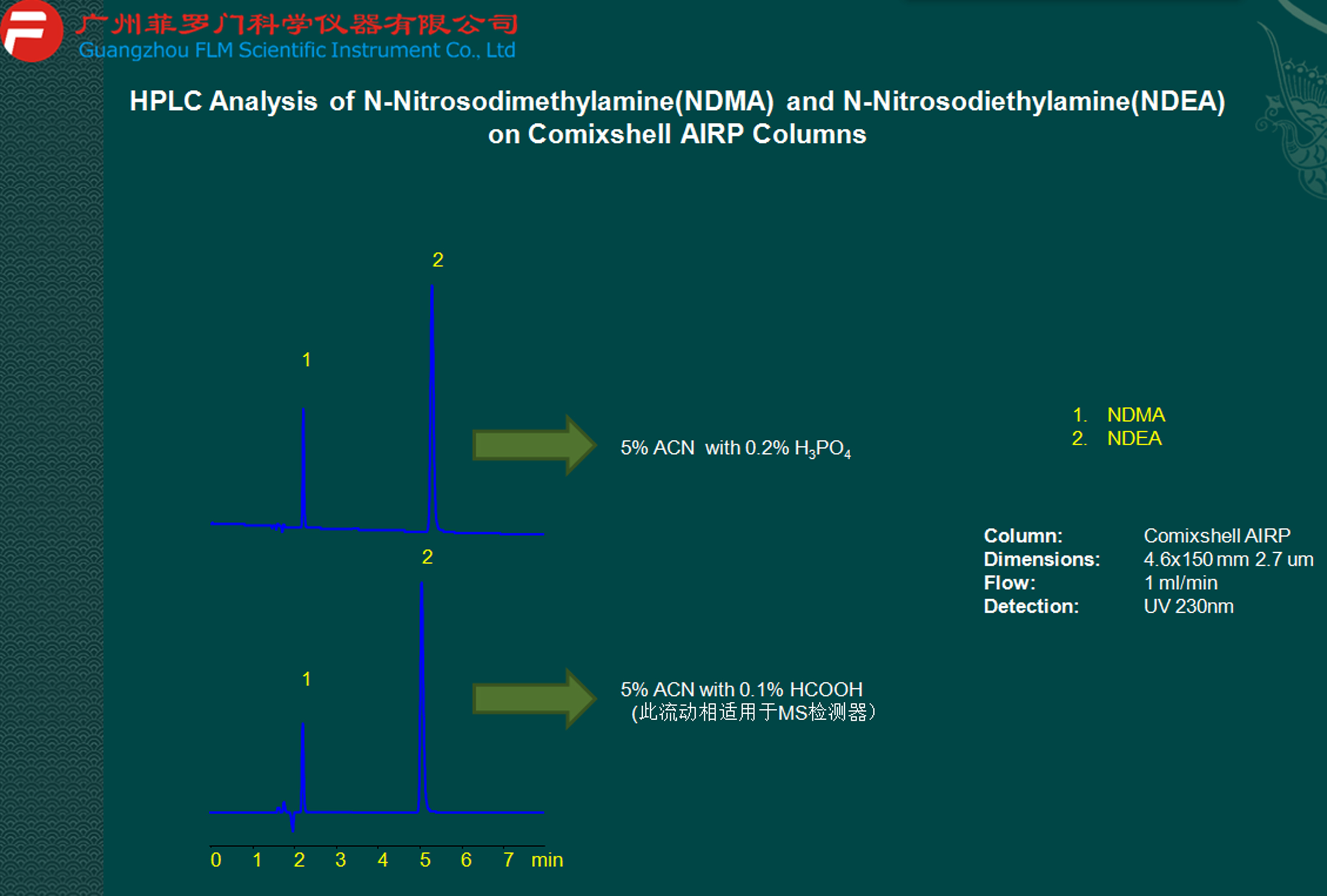 NDMA和NDEA檢測(基因毒性和元素雜質(zhì)相關(guān)應(yīng)用圖譜)菲羅門液相柱