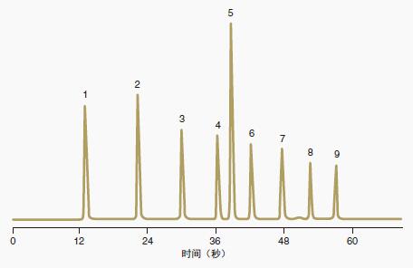 ACE Excel C18色譜柱可在不到60秒內(nèi)提供這9種分析物的基線分離。