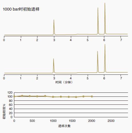 將2.1×100mm ACE Excel C18 UHPLC色譜柱在平均1,000 bar(14,500 psi)壓力下進(jìn)行2000多個(gè)梯度的運(yùn)行。