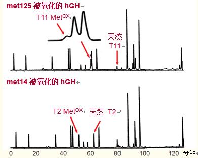 如圖36所示,含氧化甲硫氨酸的多肽比含天然甲硫氨酸的多肽出峰時(shí)間早很多。